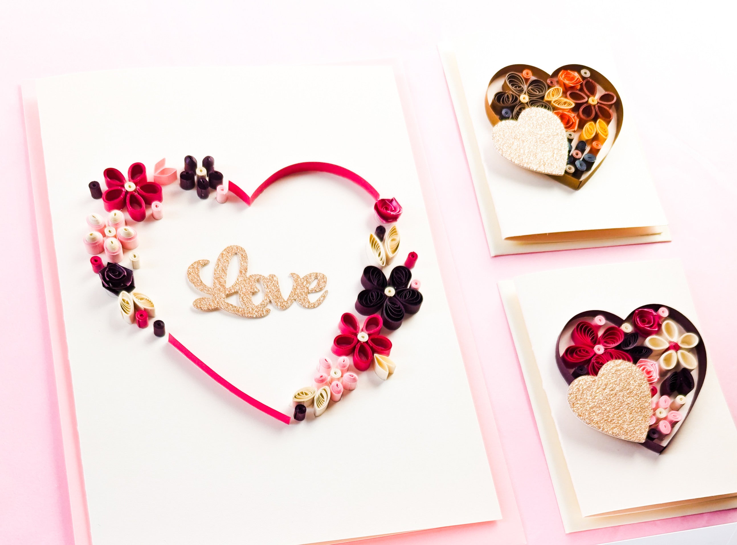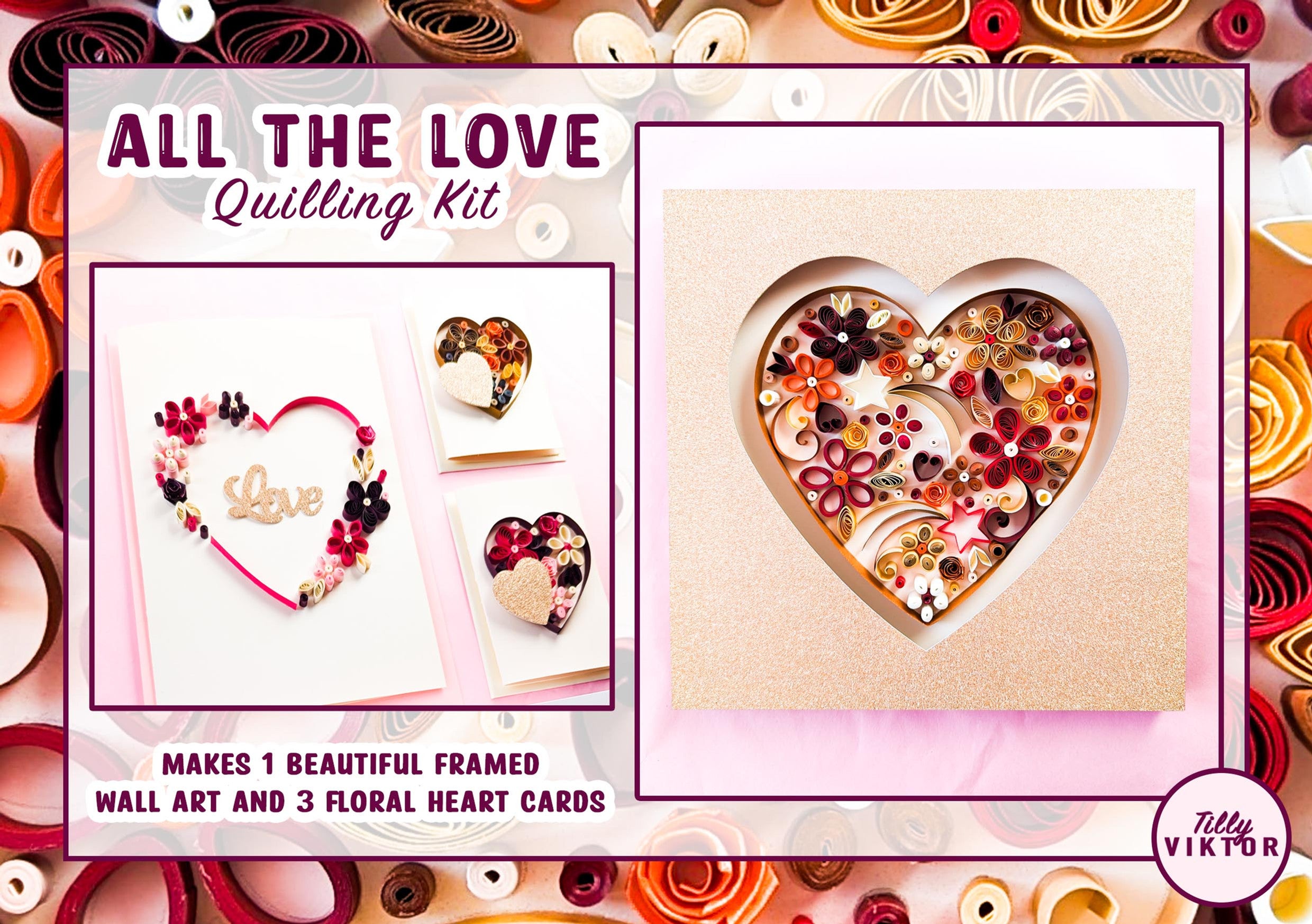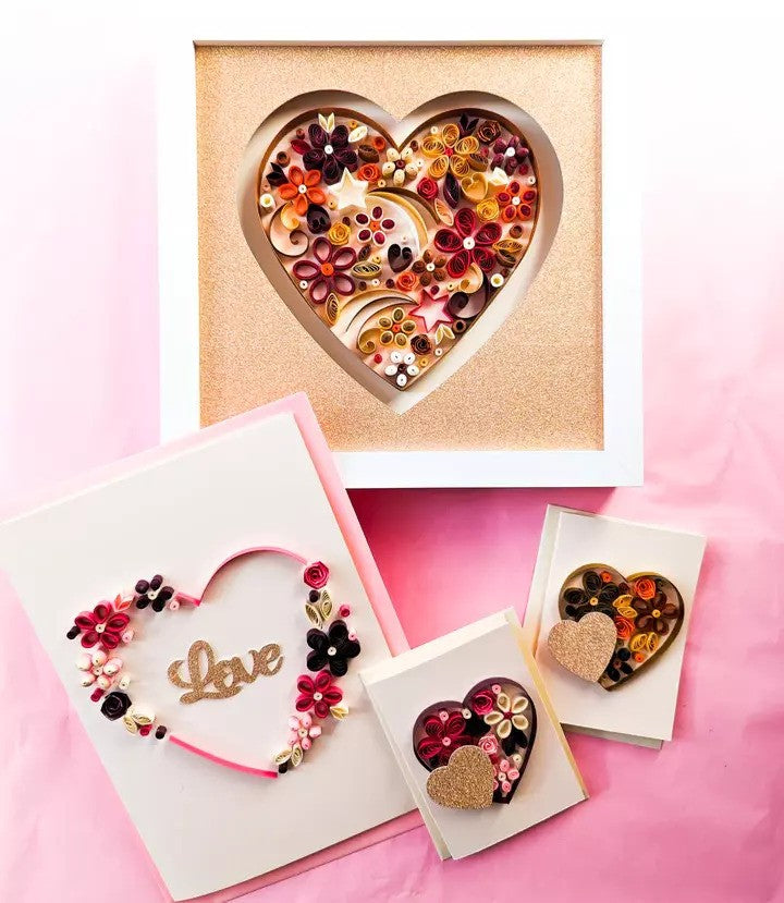 Make your own framed quilled heart wall art and quilled greeting cards with this TillyViktor All The Love kit!